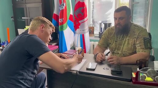 Вячеслав Демидов берет интервью у командующего диверсионно-разведывательной бригады, в зоне СВО.
