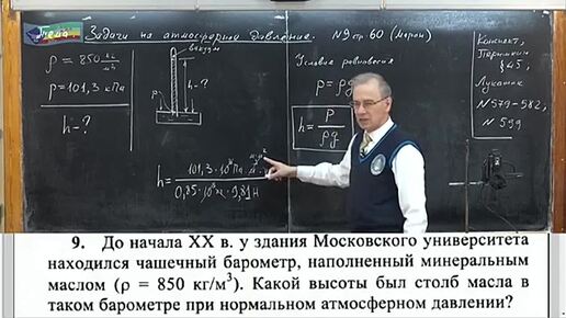 Задача на определение высоты столба масла в барометре.