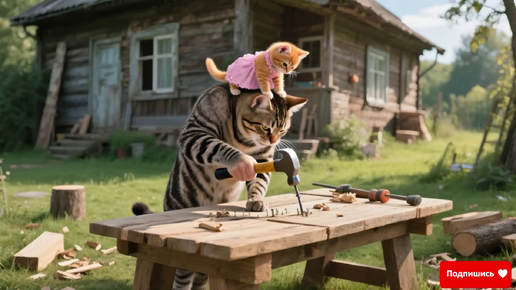 Котик папа делает новый стол