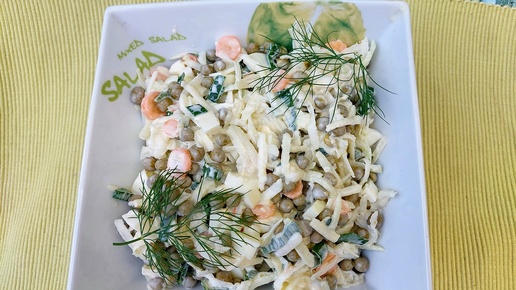 Салат из кольраби с морковью, зелёным горошком. Бодрый вкус и радостный хруст – это всё про этот салат.