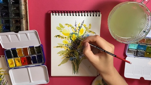 Уютный летний скетч с золотарником и вереском. Рисуем вместе