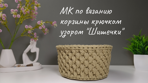 Вяжем корзину из трикотажной пряжи узором Шишечки