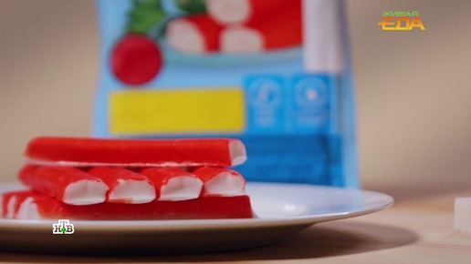 Сюжет "Живая еда" на НТВ с Юлией Пигаревой про крабовые палочки