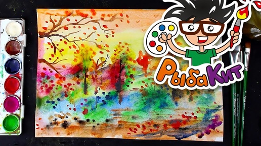 Осенний лес - акварель из сказки Маленькая Баба Яга - уроки рисования для детей