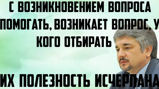 Ищенко: С возникновением вопроса помогать, возникает вопрос, у кого отбирать.Их полезность исчерпана