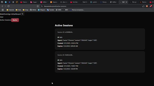 Next JS 15: список активных сессий пользователя. GIT проблемы, conflict.
