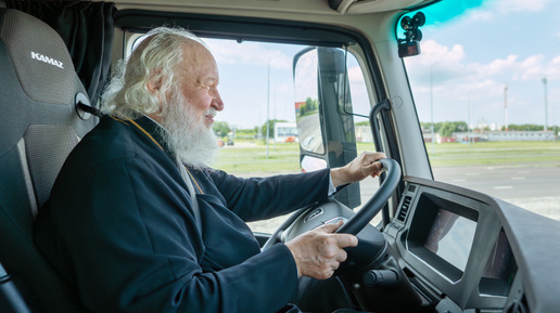Патриарх Московский и всея Руси Кирилл прокатился за рулем «КамАЗ»