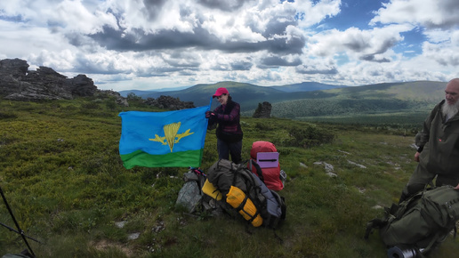Перевал Дятлова. Экспедиция 2025. Лариса и флаг ВДВ