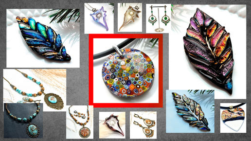 Колье, серьги, кулоны, броши из натуральных камней и муранского стекла.