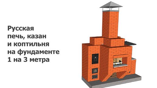Русская печь, казан и коптильня на фундаменте 1 на 3 метра