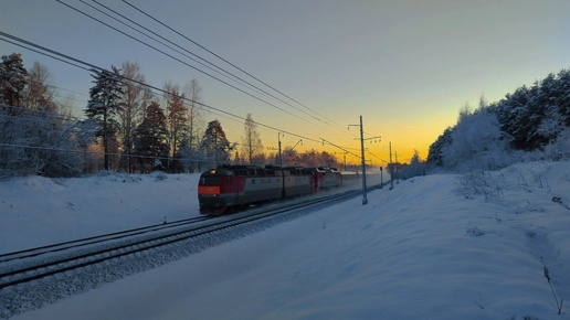 Электровозы ЧС7 - 097 и ЭП2К мчатся с фирменным поездом «Москва - Ярославль»