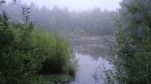 Туманное утро: пруд, утки, четыре утра