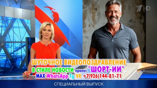 Лучшее креативное видеопоздравление в стиле новостей на первом Нейросети Шорт ИИ