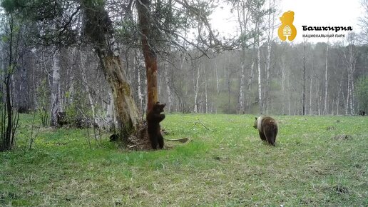 Семья медвежат на прогулке: в национальном парке «Башкирия» косолапые вышли исследовать лес