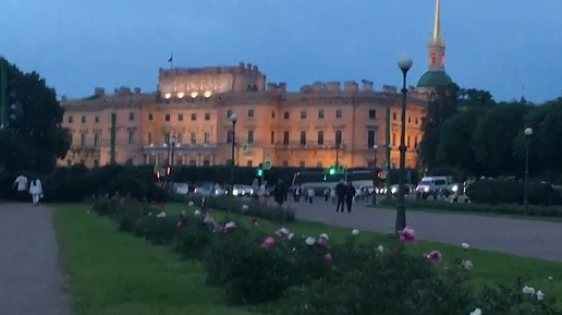 Вид на Михайловский замок в вечерней подсветке со стороны Марсова поля