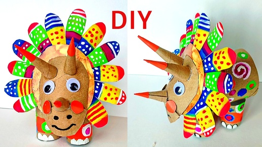 Супер поделка, динозавр из втулки, трицератопс.