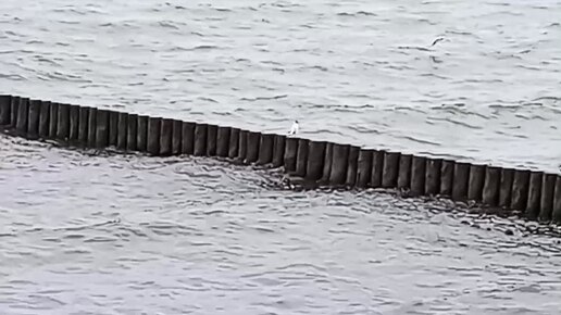 Много птиц чаек на Балтийском море в городе Зеленоградске Калининградской области