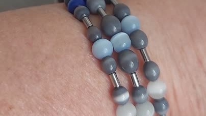 Браслет на мемори проволоке из бусин кошачьего глаза