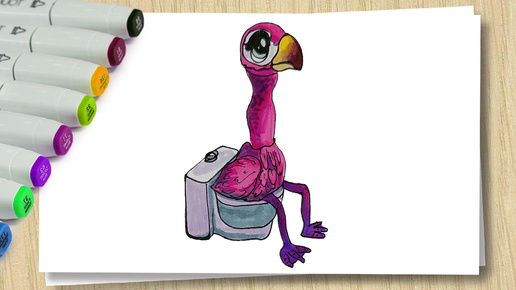 Как нарисовать Розового Фламинго _ How to draw a Flamingo _ Рисуем птицу
