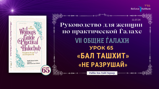 𝟲𝟱. Бал Ташхит | «Не Разрушай» | Руководство для женщин по практической Ѓалахе | Рабби Лев Лэйб Лернер