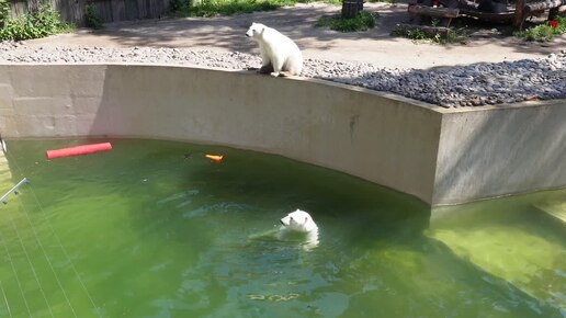 При показательном кормлении Белка уронила пойманную рыбу в бассейн. 26.07.2025