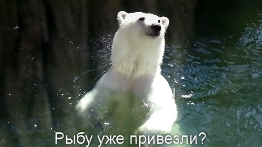 Медвежонок Белка снова прыгает в воду за сбежавшей рыбой!