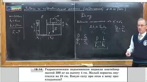 Задача на определения величины силы приложенной к гидравлическому подъемнику
