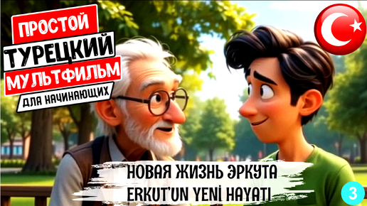 Простой турецкий мультик с переводом, субтитрами. Тренируй турецкий язык на слух. Новая жизнь Эркута