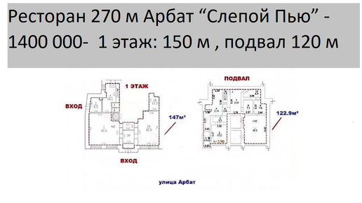 Ресторан 270 м Арбат “Слепой Пью” - 1,400,000р