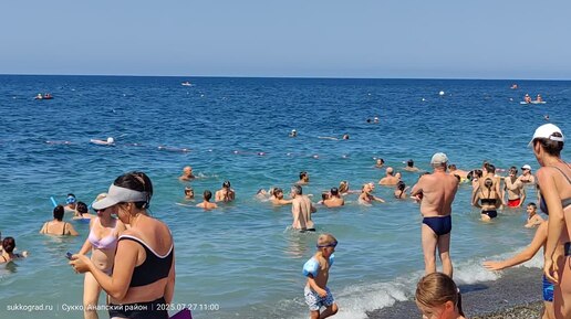 Дети лагерей Сукко на общем пляже наслаждаются морем, в то время как учащиеся Смены под замком 27.07.2025