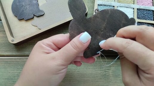 Крепление нити при вышивании бисером в 2 нити на деревянной заготовке.