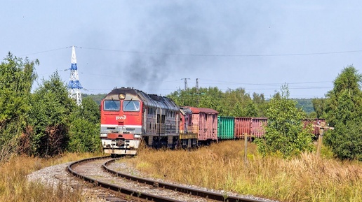 Тепловозы 2ТЭ116УД-048 и ЧМЭ3-1892 с вывозным грузовым поездом и манёвры по станции Кольчугино.