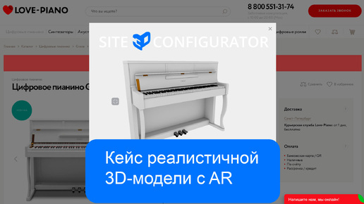 Кейс реалистичной 3D-модели пианино с примеркой в дополненной реальности