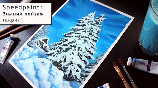 Рисую зимний пейзаж акрилом_Speedpaint