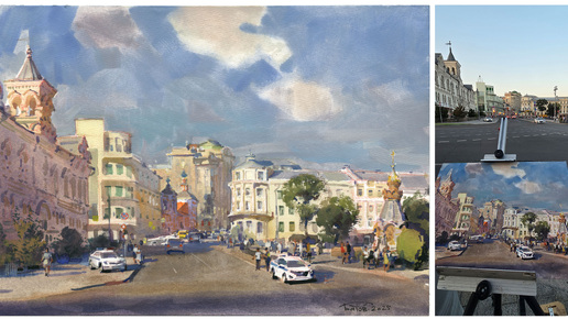20250727 Ильинские ворота, , пленэрный этюд, гуашь