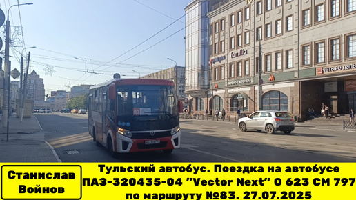 Тульский автобус. Поездка на автобусе ПАЗ-320435-04 "Vector Next" О 623 СМ 797 по маршруту №83. 27.07.2025