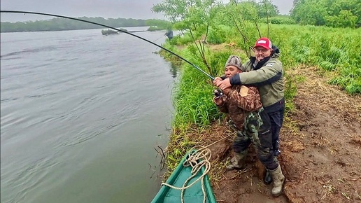 ОГРОМНАЯ РЫБА ТАЩИТ МУЖИКОВ В ВОДУ! ЭТО РЫБАЛКА НА КАМЧАТКЕ