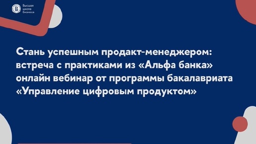 Вебинар «Стань успешным продакт-менеджером: встреча с практиками из Альфа-банка» от программы бакалавриата «Управление цифровым продуктом»