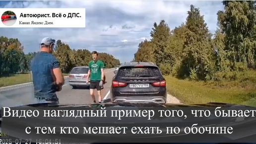 Видео наглядный пример того, что бывает с тем кто мешает ехать по обочине