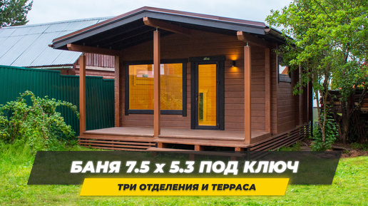 Большая баня Ukko 7,5 х 5,3 (м). Баня из трех отделений и террасой. Баня с панорамным окном.