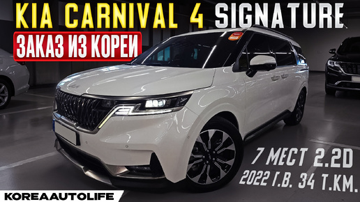 Обзор для заказа из Кореи KIA Carnival 4 Signature 7 мест 2.2D авто 2022 года с пробегом 34 т.км.