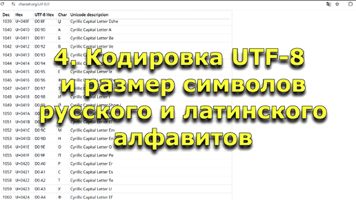 4. Кодировка UTF-8 и размер символов русского и латинского алфавитов