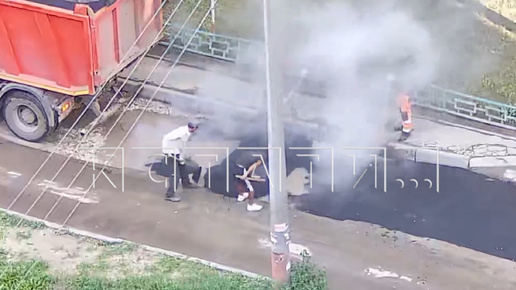 Я лужи разгоню асфальтом — дорожники укладывают асфальт в воду
