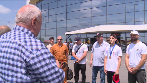Победителя первенства Европы по боксу Арсамага Каркузова встретили в аэропорту "Владикавказ"