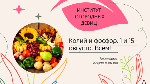 КАЛИЙ И ФОСФОР. 1 го и 15 го августа. Всем!