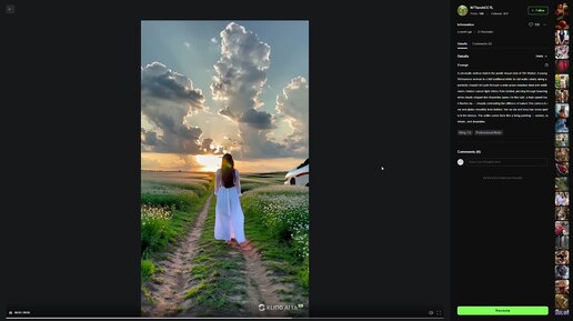 A woman walks across a field and is overtaken by a train