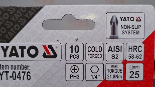 0476 Набор бит YATO 1/4" 10 предметов PH3 25мм