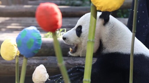 Модель солнечной системы и различные лакомства подарили панде Жуи из Московского зоопарка в честь дня рождения!