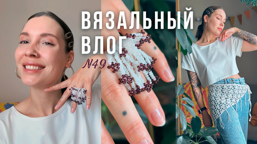 Вязальный влог | косынка-фартук💛кольцо из бисера💛поло из квадратов🎂др сестренки