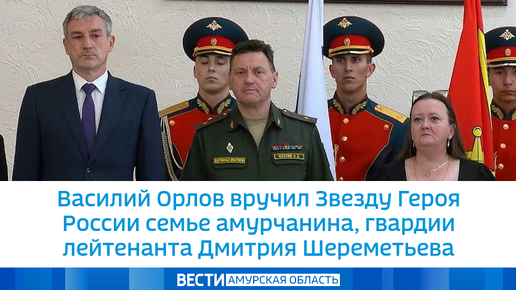 Василий Орлов вручил Звезду Героя России семье амурчанина, гвардии лейтенанта Дмитрия Шереметьева
